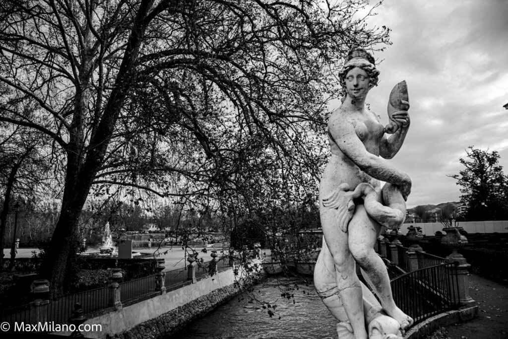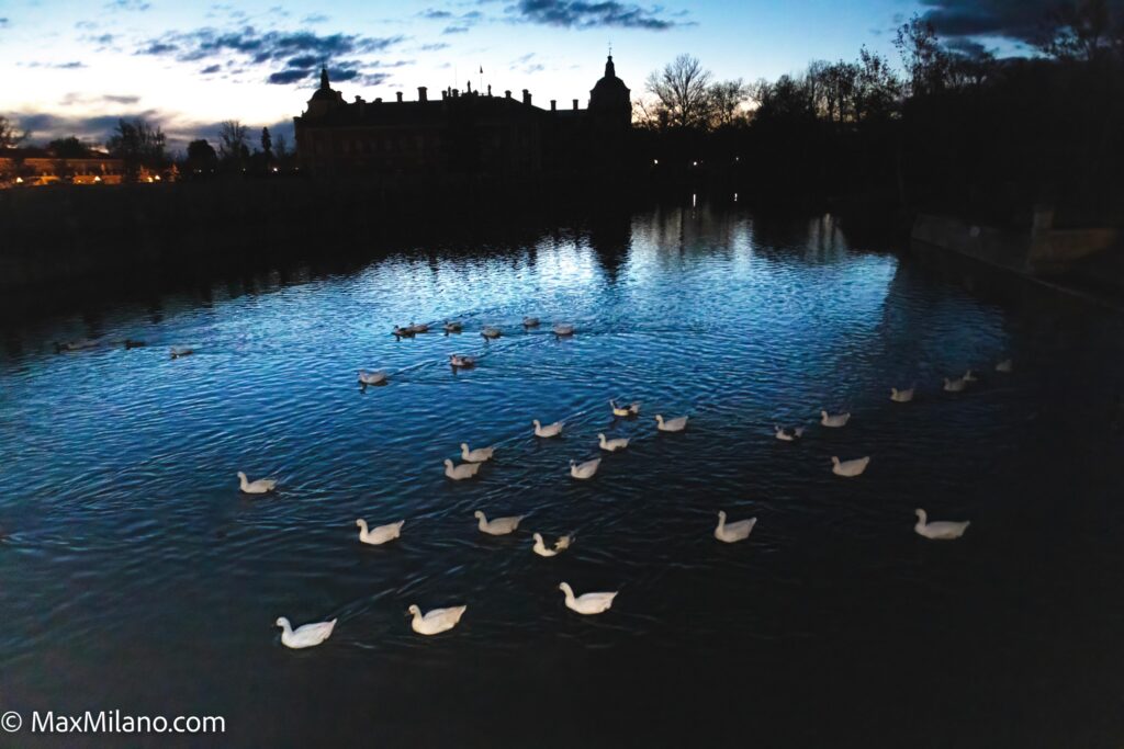 We cross the bridge just as darkness swallows the last of the sunset and watch the palace’s white geese swim and squawk in the murky water. Some of the geese climb out and wander beneath the legs of startled tourists, posing for photos, perhaps hoping for food. The park beyond looks gloomy at night, its pale neo-Roman statues frozen in the cold like abandoned gods.