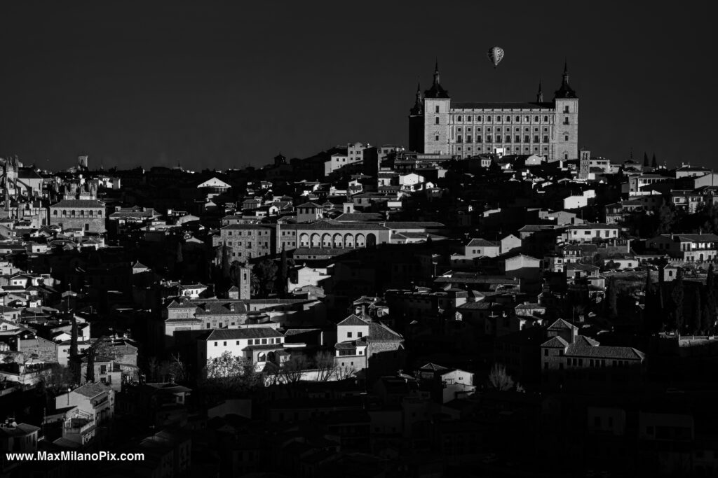 A boxy church crowns the hilltop, and a hot-air balloon drifts silently above it, almost as if someone had staged it to highlight the scene. The morning light cuts through the cold, illuminating stone, tiles, and the river in a way that feels unreal. I snap photographs from the same vantage point where El Greco painted Toledo, except he filled his sky with storms and dread. Today, there is nothing but a clear, high-desert blue, not a cloud in sight.